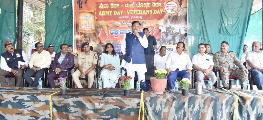 ನಗರದ ಡಾ. ಶ್ರೀ ಶಿವಕುಮಾರ ಸ್ವಾಮೀಜಿ ವೃತ್ತದ ಲ್ಲಿರುವ ಎನ್‌ಸಿಸಿ-೪ರ ಬೆಟಾಲಿಯನ್‌ನಲ್ಲಿ ನಡೆದ ಸೇನಾ ದಿವಸ್, ಮಾಜಿ ಯೋಧನ ದಿವಸ್, ರಕ್ತದಾನ ಶಿಬಿರ ಹಾಗೂ ಸಂಕ್ರಾAತಿ ಹಬ್ಬವನ್ನು ಉದ್ಘಾಟಿಸಿ ಅವರು ಮಾತನಾಡಿದರು.