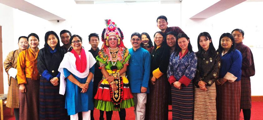 ಯಕ್ಷಗಾನದ ಪ್ರಾಥಮಿಕ ಹೆಜ್ಜೆಗಾರಿಕೆ, ಅಭಿನಯ, ಮಾತುಗಾರಿಕೆ ಹಾಗೂ ರಂಗಚಲನೆಗಳನ್ನು ಕಾರ್ಯಾಗಾರದ ಮೂಲಕ ಭೂತಾನ್ ಕಲಾವಿದರಿಗೆ ಕಲಿಸಿಕೊಡಲಾಯಿತು. ಹಾಗೆಯೇ ಮಾಸ್ಕ್ ಡ್ಯಾನ್ಸ್ನ ರಚನೆ, ವಿನ್ಯಾಸ, ವಸ್ತು ಹಾಗೂ ರಂಗಚಲನೆಗಳನ್ನು ಅಭ್ಯಾಸ ಮಾಡಲಾಯಿತು. ಭೂತಾನ್ ದೇಶದ ಸಾಂಸ್ಕೃತಿಕ ಹಾಗೂ ಧಾರ್ಮಿಕ ಬದುಕಿನಲ್ಲಿ ಮುಖವಾಡ ನೃತ್ಯದ ಪಾತ್ರ ಮತ್ತು ಪ್ರಭಾವಗಳನ್ನು ವಿಶ್ಲೇಷಣೆಗೆ ಒಳಪಡಿಸಲಾಯಿತು. ಸಾಂಸ್ಕೃತಿಕ ನಗರಿ ಪಾರೊ, ಪ್ರಾಚೀನ ರಾಜಧಾನಿ ಪುನಾಖ ಹಾಗೂ ಪ್ರಸಕ್ತ ರಾಜಧಾನಿ ಥಿಂಪುವಿನಲ್ಲಿರುವ ವಿವಿಧ ಬೌದ್ಧಮಂದಿರಗಳು ಹಾಗೂ ಸಾಂಸ್ಕೃತಿಕ ಕೇಂದ್ರಗಳಿ ಭೇಟಿ ನೀಡಿ ಅಧ್ಯಯನ ನಡೆಸಲಾಯಿತು.