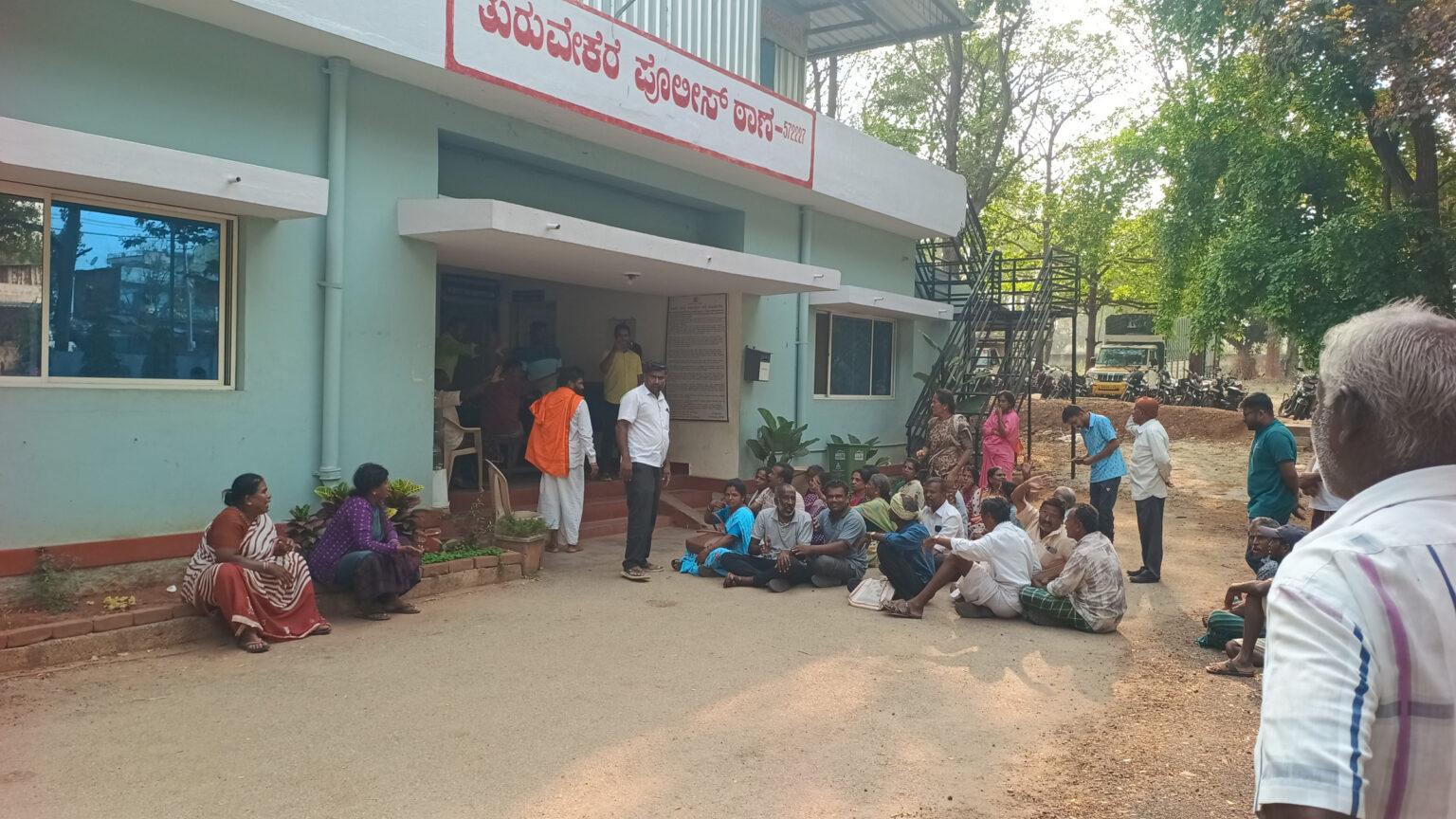 ತುರುವೇಕೆರೆ: ಕಳೆದ ಐವತ್ತಕ್ಕೂ ಹೆಚ್ಚು ವರ್ಷದಿಂದ ತಮ್ಮ ಅನುಭವದಲ್ಲಿರುವ ಜಮೀನಿನ ದಾಖಲೆಗಳನ್ನು ಕೆಲವು ವ್ಯಕ್ತಿಗಳು ಕಂದಾಯ ಇಲಾಖೆಗೆ ತಪ್ಪು ಮಾಹಿತಿ ನೀಡಿ ಬೇರೆಯವರ ಹೆಸರಿಗೆ ಮಾಡಿಸಿಕೊಂಡು ನಮ್ಮನ್ನು ಒಕ್ಕಲೆಬ್ಬಿಸಲು ಪ್ರಯತ್ನಿಸುತ್ತಿದ್ದಾರೆಂದು ಆರೋಪಿಸಿ ಕರಡಗೆರೆ ಗ್ರಾಮದ ಶಿವಪ್ಪನವರ ಕುಟುಂಬದ ಸದಸ್ಯರು ಗ್ರಾಮಸ್ಥರೊಡನೆ ಇಲ್ಲಿಯ ಪೊಲೀಸ್ ಠಾಣೆ ಮುಂಭಾಗ ಕೆಲ ಕಾಲ ಪ್ರತಿಭಟನೆ ಮಾಡಿದ ಘಟನೆ ನಡೆಯಿತು.